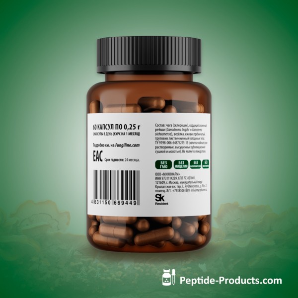 The company's activities are focused on creating a comprehensive range of innovative, certified, research-based mushroom products. Made in Russian Federation.
