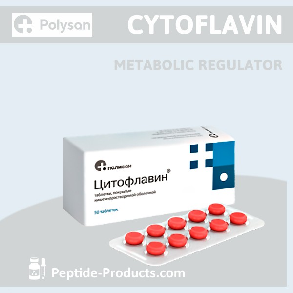 Nicotinamide (vitamin PP) is an amide of nicotinic acid. Nicotinamide in cells through a cascade of biochemical reactions is transformed into the form of nicotinamide adenine dinucleotide (NAD) and its phosphate (NADP), activating nicotinamide-dependent Krebs cycle enzymes necessary for Inosine is a purine derivative, a precursor of ATP. It has the ability to activate a number of Krebs cycle enzymes, stimulating the synthesis of key nucleotide enzymes: flavin adenine dinucleotide (FAD) and nicotinamide adenine dinucleotide (NAD). Thus, all components of CYTOFLAVIN® are natural metabolites of the body and stimulate tissue respiration. Metabolic energy correction, antihypoxic and antioxidant activity of the drug, which determine the pharmacological properties and therapeutic efficacy of the components, are due to the complementary action of succinic acid, inosine, nicotinamide and riboflavin.